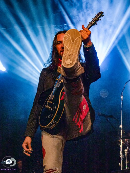 Raoul Kerr rapeaba mientras que Jayant Bhadula hacia guturales, dos cantantes diferentes que juntos eran asombrosos. Con el retumbar de Vishesh Singh a la batería y de Sarthak Pahwa al dhol (tambor) pensé que en cualquier momento echarían abajo el escenario. Ver a toda la formación en línea haciendo headbanging al unísono fue espectacular. Hubo un momento en una canción que Sarthak Pahwa bajó al foso para tocar y hacer headbanging más cerca del público. La sala, que estaba llena, se rindió a sus pies cuando Jayant Bhadula pidió que todo el mundo se agachara y cuando contó tres todo el mundo saltó y disfruto con el ritmo ametrallador de la banda. Bloodywood tocó siete canciones aproximadamente y puedo asegurar que con la primera ya nos llevaron a su bolsillo. Me dejaron con la boca abierta, sin duda van a mi lista de bandas para volver a ver.