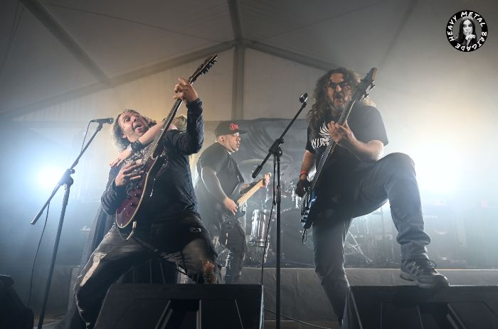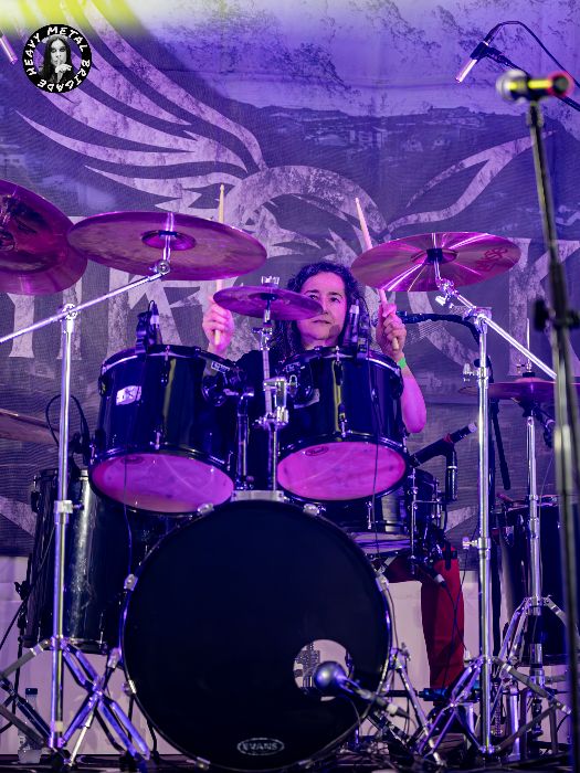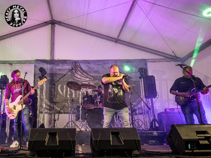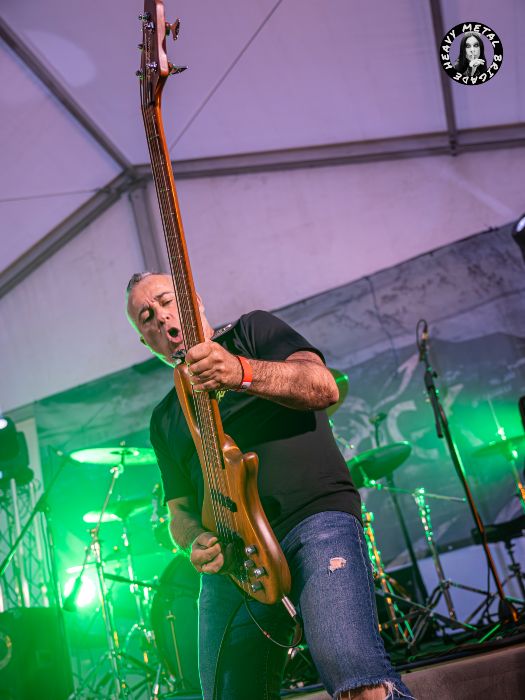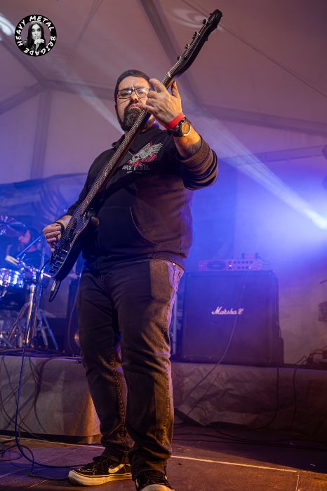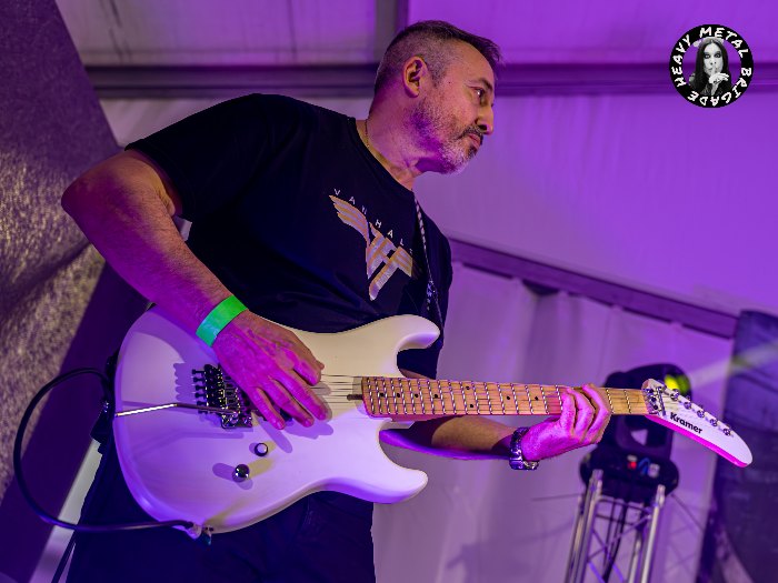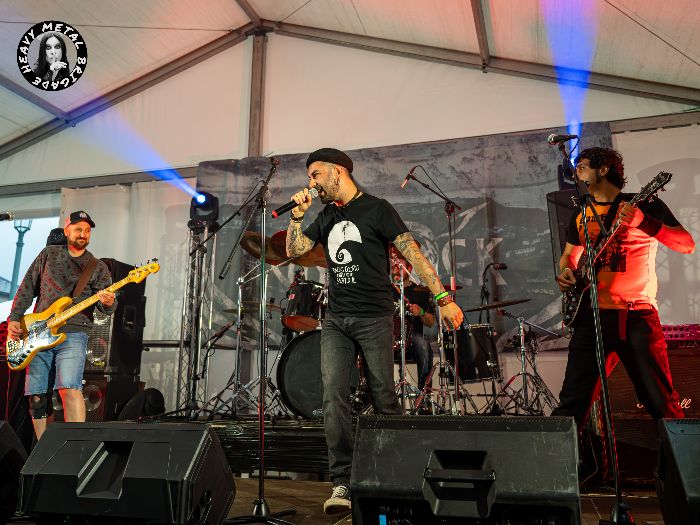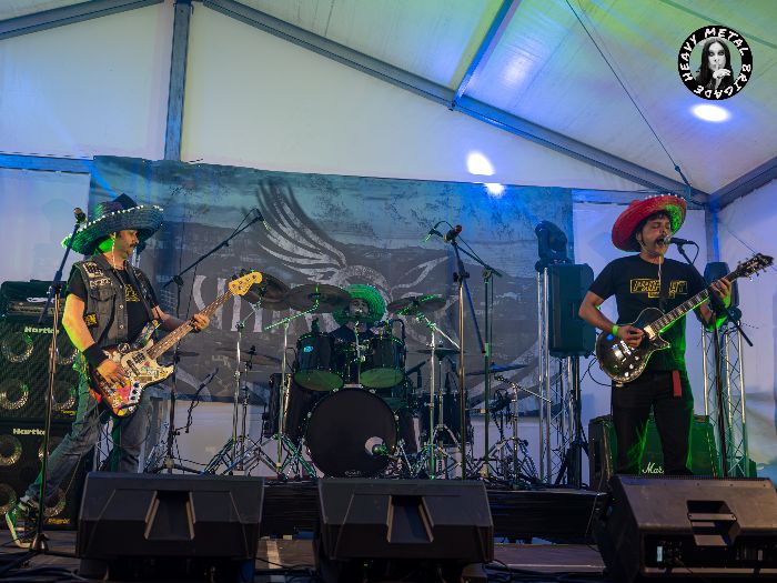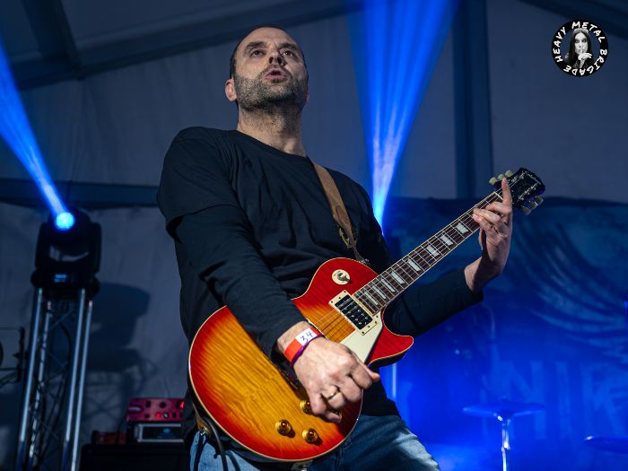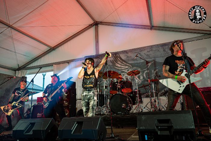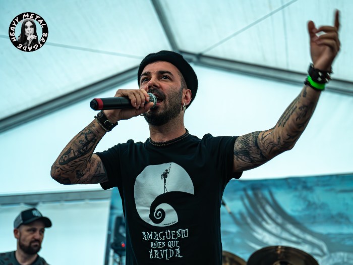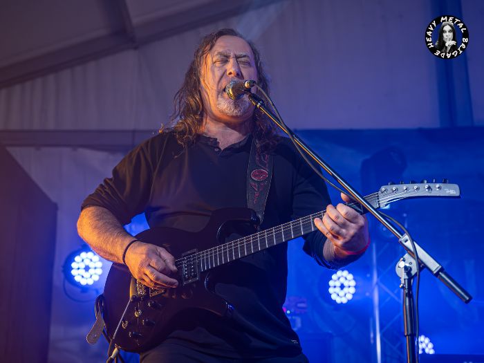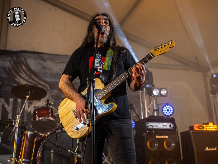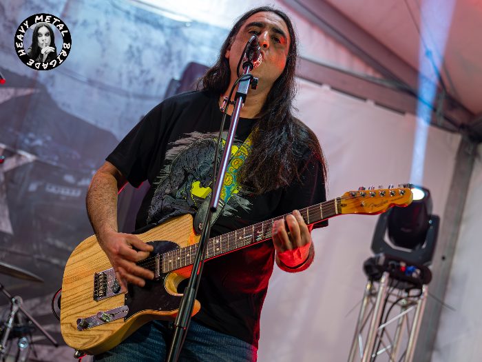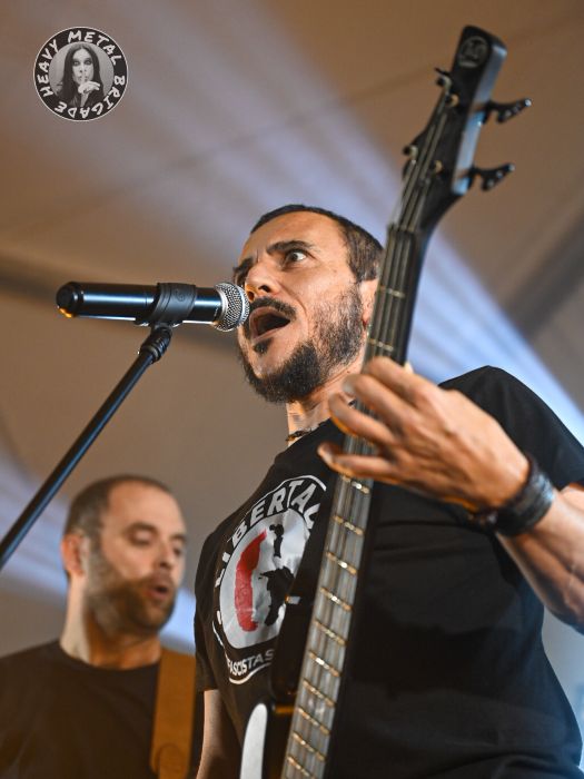 Desde que, bañados en luz verde, arrancan con “Vuelve” de su nuevo álbum, pronto queda claro que van a disfrutar de un sonido tanto o mejor que las muchas bandas que fueron desfilando a lo largo de la jornada. José Santos, que llevaba una pequeña tablet para (intuyo) las letras, mostró una voz potente ya desde las primeras estrofas. Es el suyo un registro lleno de personalidad, también de fuerza, que a ratos me recuerda al bueno de Víctor García (WarCry). También a Sergio Márquez de los desaparecidos power metaleros catalanes Dragonslayer. Juan Muiños y Ger García dejaron ya buenos solos doblados en este primer corte. Nos las prometíamos muy felices.