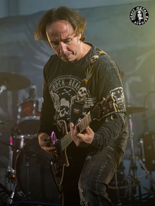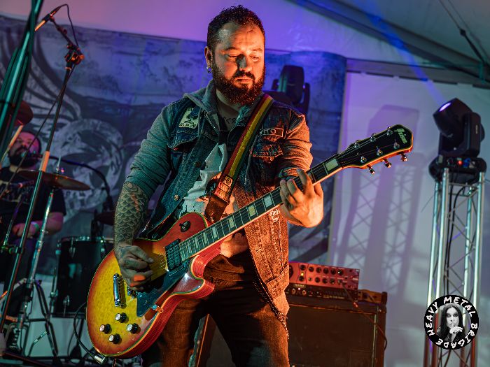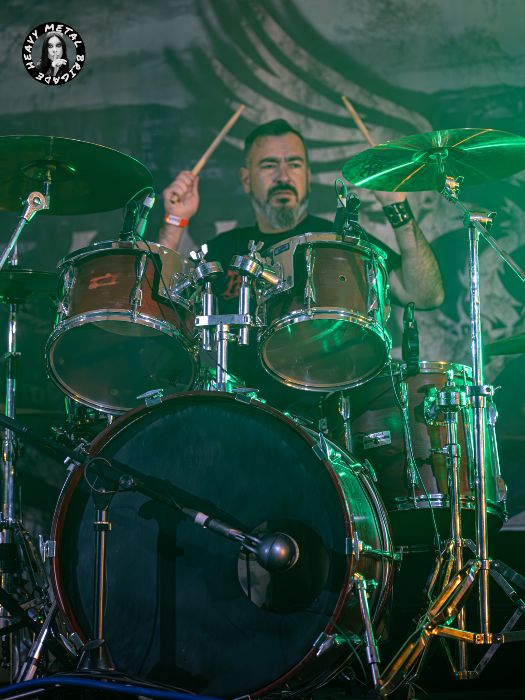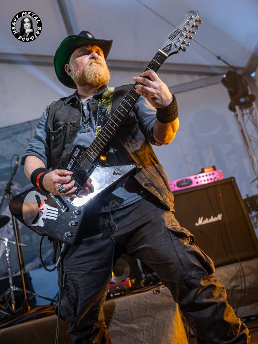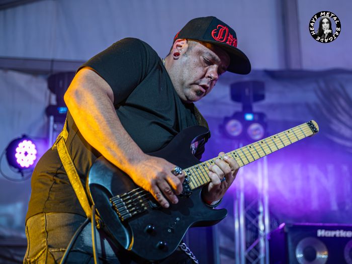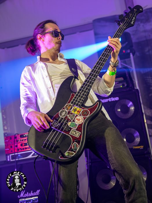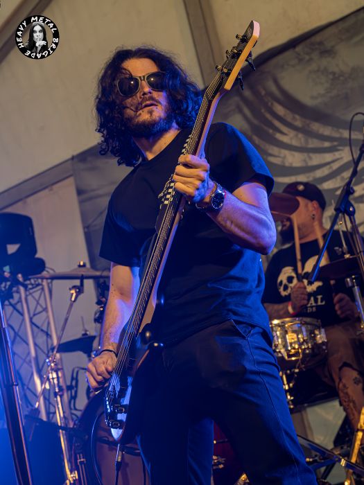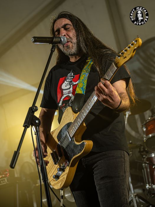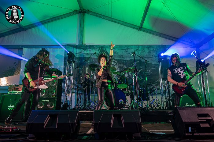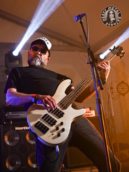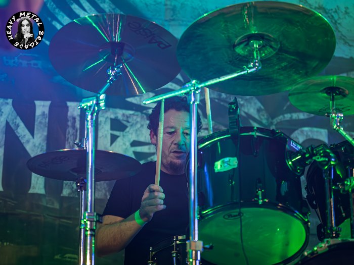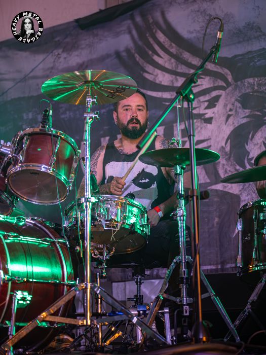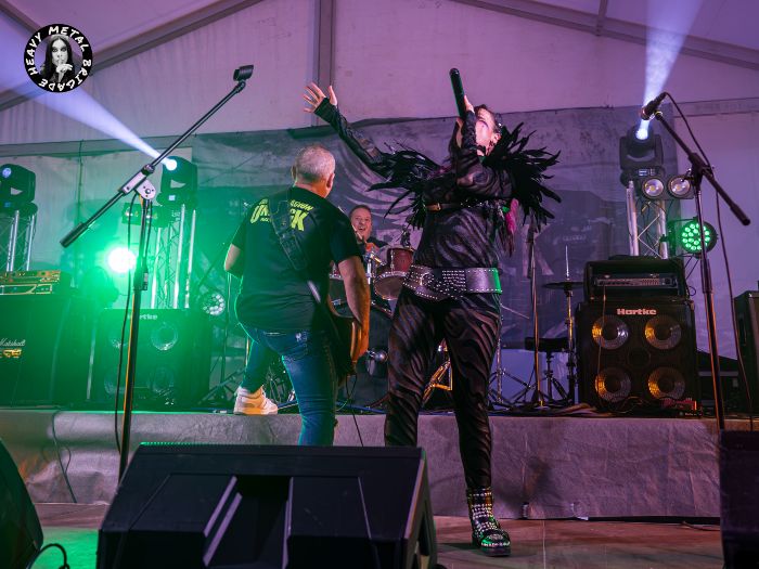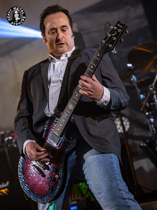 Desde que, bañados en luz verde, arrancan con “Vuelve” de su nuevo álbum, pronto queda claro que van a disfrutar de un sonido tanto o mejor que las muchas bandas que fueron desfilando a lo largo de la jornada. José Santos, que llevaba una pequeña tablet para (intuyo) las letras, mostró una voz potente ya desde las primeras estrofas. Es el suyo un registro lleno de personalidad, también de fuerza, que a ratos me recuerda al bueno de Víctor García (WarCry). También a Sergio Márquez de los desaparecidos power metaleros catalanes Dragonslayer. Juan Muiños y Ger García dejaron ya buenos solos doblados en este primer corte. Nos las prometíamos muy felices.