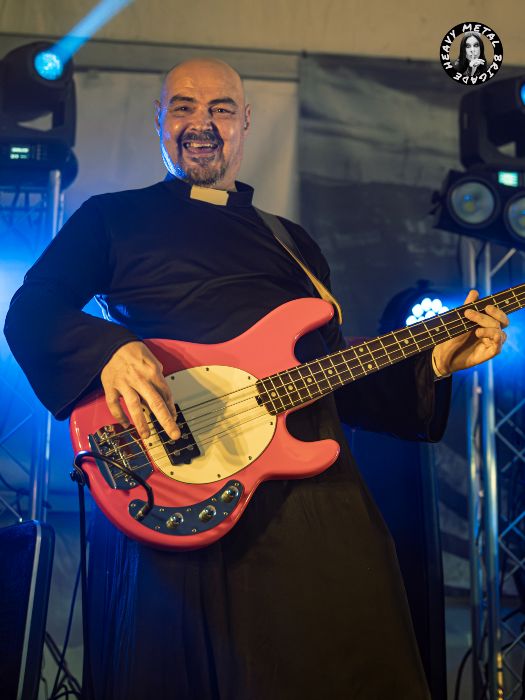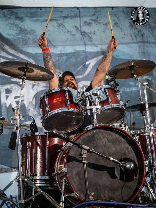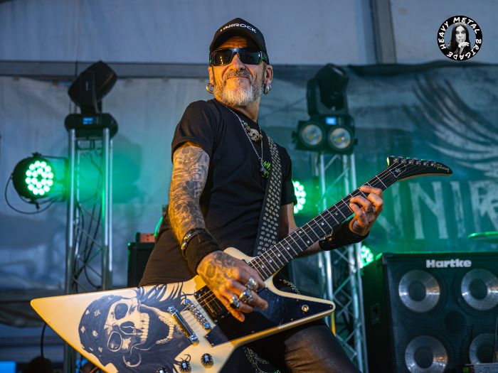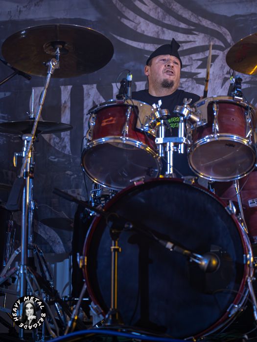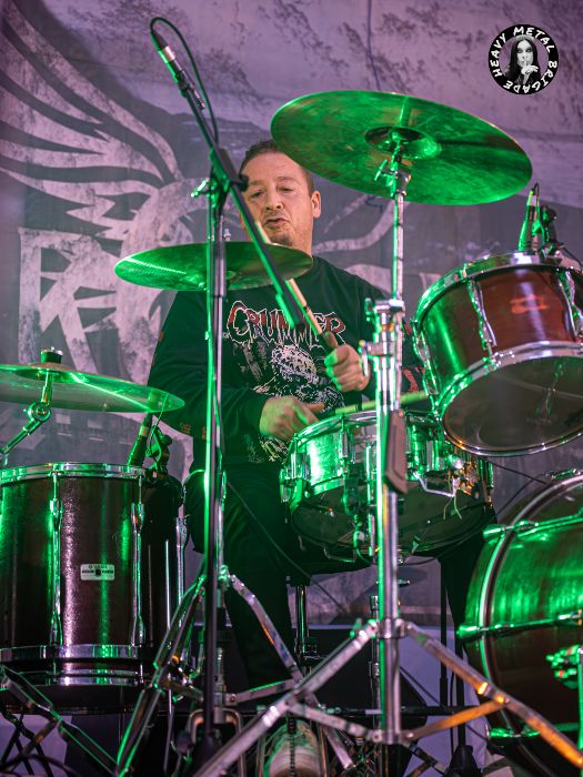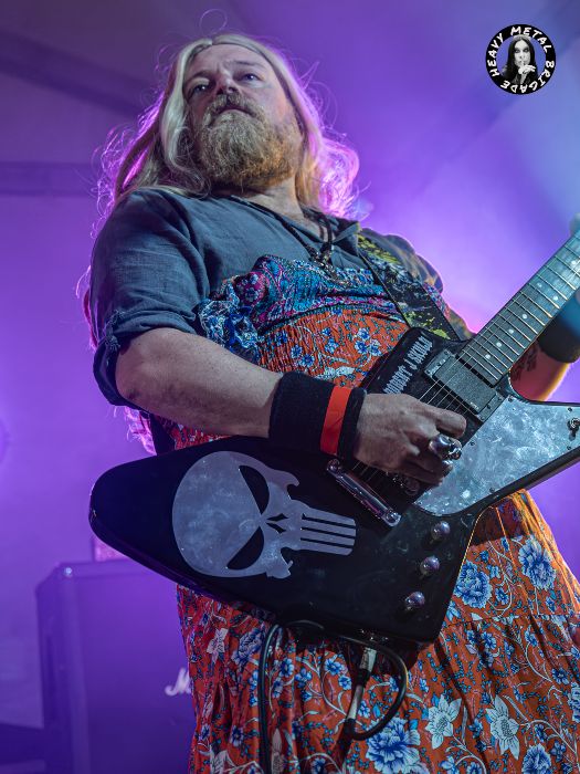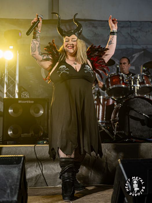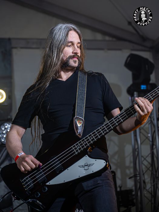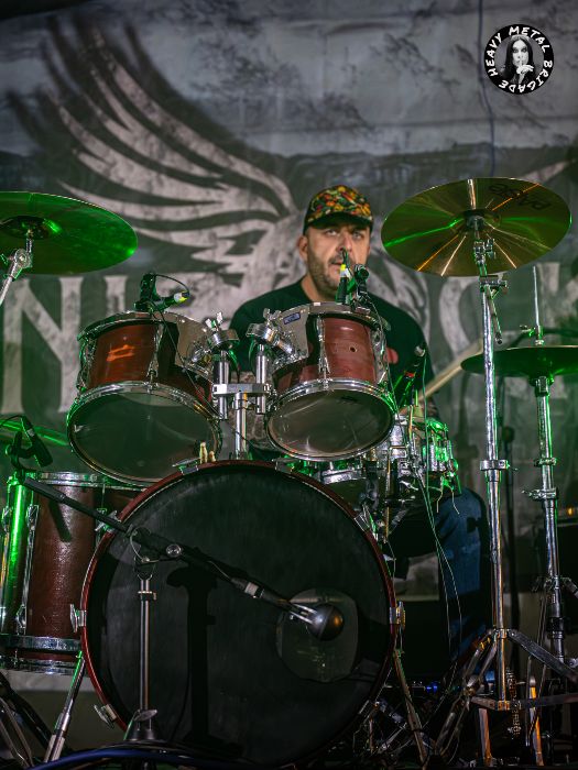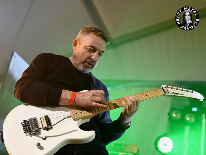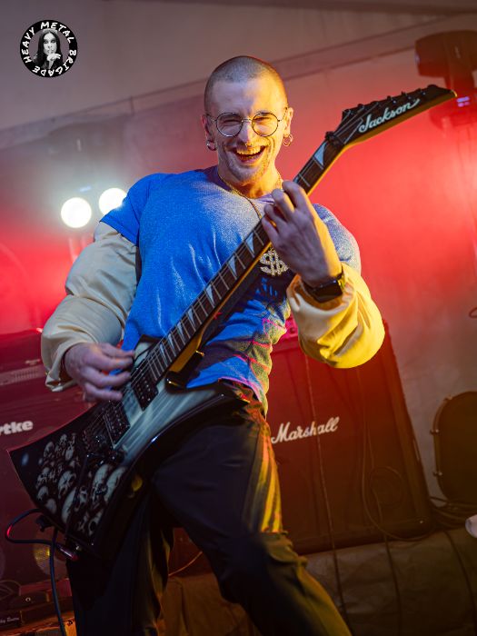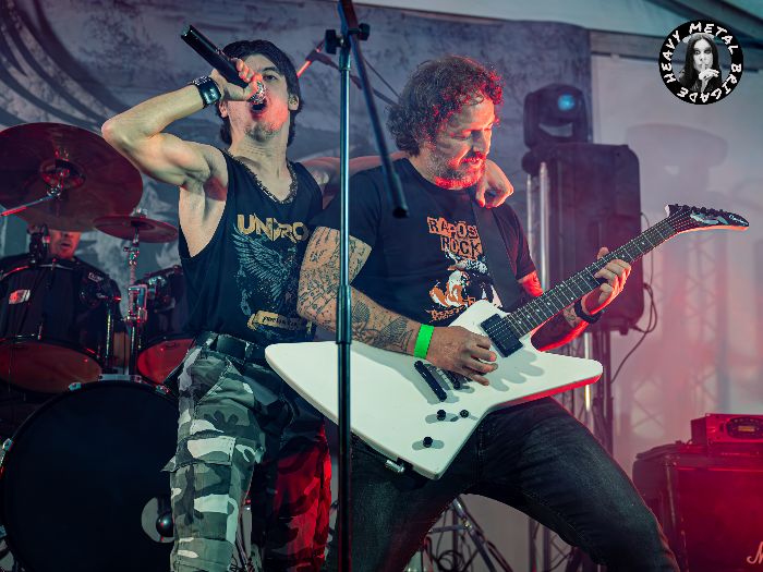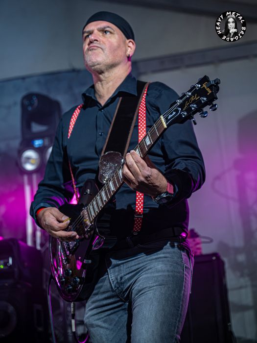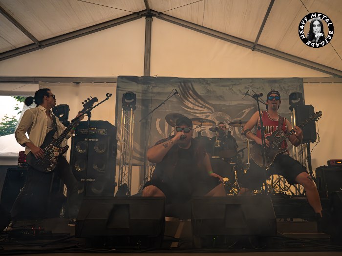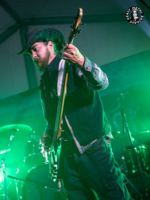 Desde que, bañados en luz verde, arrancan con “Vuelve” de su nuevo álbum, pronto queda claro que van a disfrutar de un sonido tanto o mejor que las muchas bandas que fueron desfilando a lo largo de la jornada. José Santos, que llevaba una pequeña tablet para (intuyo) las letras, mostró una voz potente ya desde las primeras estrofas. Es el suyo un registro lleno de personalidad, también de fuerza, que a ratos me recuerda al bueno de Víctor García (WarCry). También a Sergio Márquez de los desaparecidos power metaleros catalanes Dragonslayer. Juan Muiños y Ger García dejaron ya buenos solos doblados en este primer corte. Nos las prometíamos muy felices.