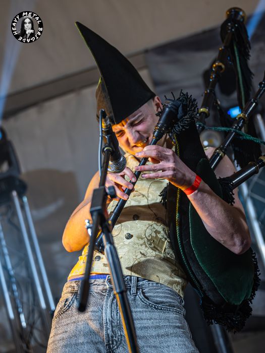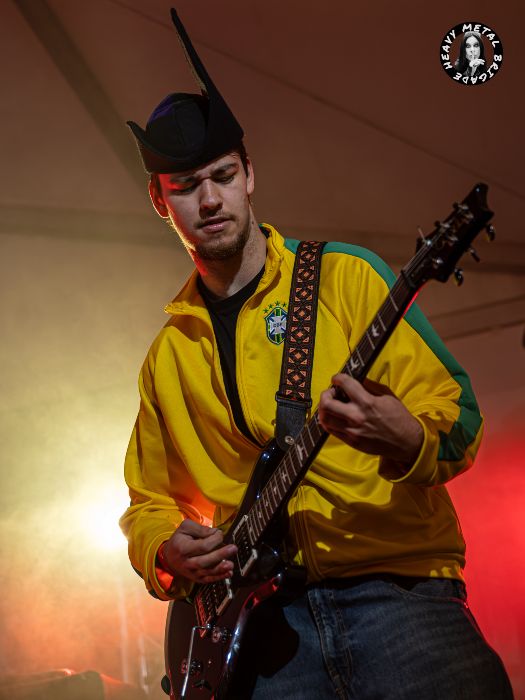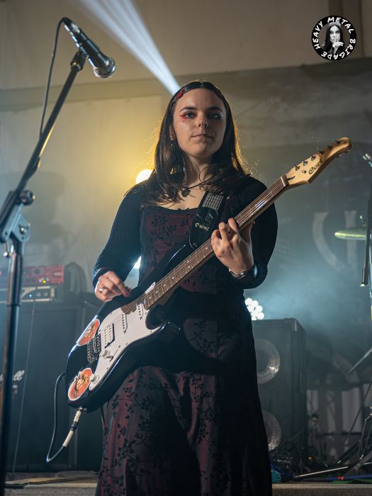 Pasan veinticinco de las doce cuando los gallegos hacen suyas las tablas del Perversiones y pronto salta a la vista que ha habido cierta espantá en lo que a público se refiere. Algo que, como bien me apuntaba mi compañero Lago (Piratas de Libertalia), ya sucediera en la edición del pasado año con Zenobia. Huelga decir que ello no arredra al quinteto, que recibe de espaldas a la audiencia mientras suena la intro. Destacan los ropajes negros que lucen, uno de esos pequeños detalles en cuanto a puesta en escena que siempre suman.