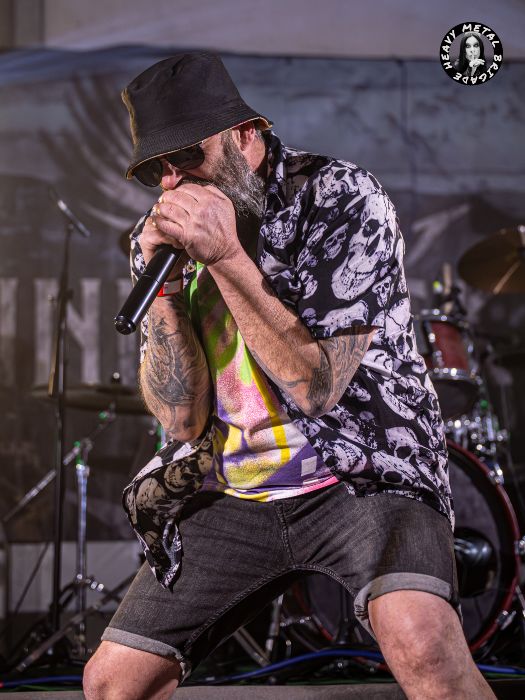 Aquí me agradó “Mi Guitarra” por la forma en que añadió algo más de melancolía a su bien conocido heavy metal. La banda fue así fraguando un set ágil y diverso. Santos puede no ser el líder más móvil que hayamos visto en tiempos recientes. Veníamos además de ver a Drunken Buddha en la jornada anterior, con un Michael Arthur Long de nuevo pletórico y que nos tiene muy mal acostumbrados. Pero en honor a la verdad hay que decir que el de Mugardos ofreció una serie de interpretaciones a las que se les pueden poner muy pocos peros.