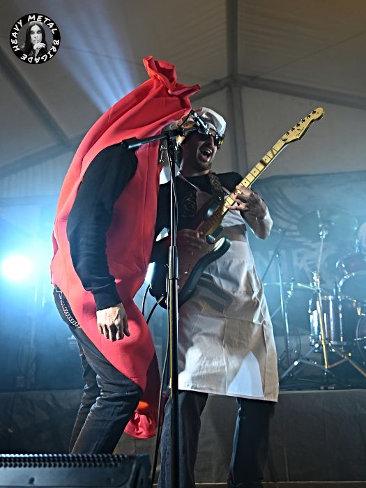 Lo primero en saltar a la vista, como siempre, es su llamativa puesta en escena. De pronto Viti es un trasunto del merluzo intragable de Llados. López parece serlo de Iker Jiménez. Nada queda al azar si has escuchado su cuarto álbum. Pero lo mejor es que desde que arrancan con “República Capilar del Turkistan” suenan tan sólidos y redondos como, de hecho, viene a evidenciar su último álbum. Porque arremeten con la mayor pesadez de “Mis Pecados Capilares” y uno se pregunta si, alguna vez, habrán alcanzado semejante grosor en su propuesta. Del mismo modo tuvieron tiempo igualmente de virar al pasado y recordar la inefable “Susana Grisú”, que incluso provocó un (tímido) circle pit. A nosotros nos llegaría el turno para reponer fuerzas, así que nos fuimos un rato al backstage.