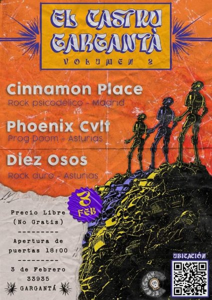 Tras su inauguración el pasado 20 de enero, «El Castru Gargantá» regresa con un nuevo evento protagonizado en esta ocasión por el trio psicodélico madrileño Cinnamon Place, Phoenix Cvlt que repite presentación de su ópera prima «La Profecía» y los rockeros langreanos DiezOsos.