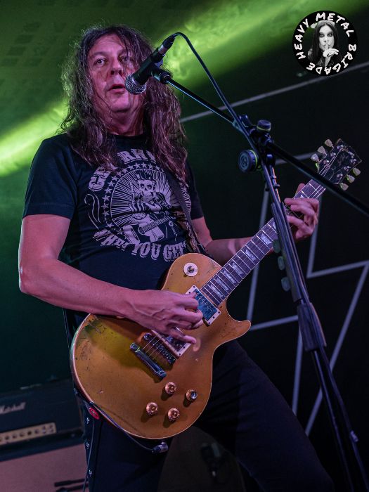 Eso y que son unos musicazos, evidentemente. Sobresale, claro, Carlos Raya. Curtido en mil y un batallas y al pie del cañón con una sapiencia y un buen gusto al encarar sus riffs y melodías que te reconectan con la esencia misma del rock and roll. Maestro absoluto, ovacionado varias veces a lo largo de la noche y no es para menos.