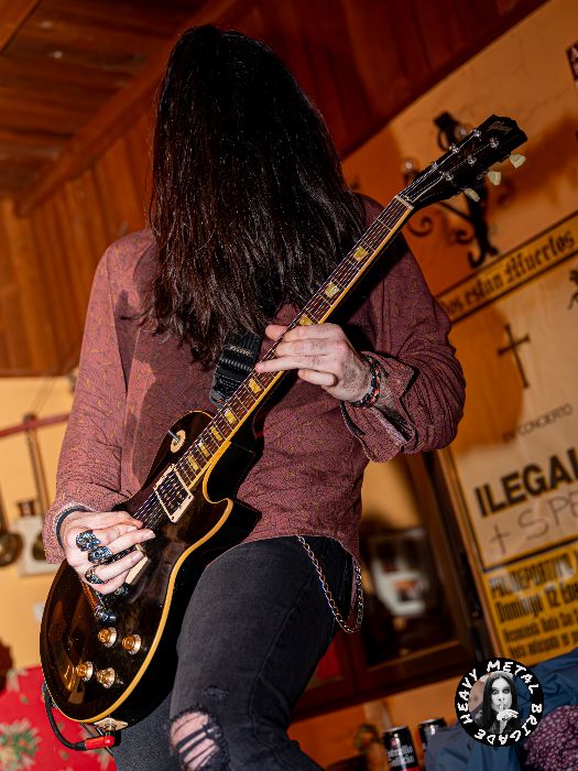 Para “Purple Skin”, ya con la Les Paul negra de vuelta, Arthur Long pone a prueba los bancos del local, improvisada pasarela, y solo sonrisas pueblan nuestros rostros. Que además el sonido, sin ser el de los grandes recintos, solo faltaba, alcanzó para disfrutar de los asturianos sin mayores contrariedades. “Can’t Hold Your Gaze” sonó tan fulgurante como acostumbra. Aquí aprovecharían para deslizar algún tema nuevo, “Sweet Huntress”, y comentar que “está todo en manos de Juan Martínez” según palabras del propio frontman del Buddha.
