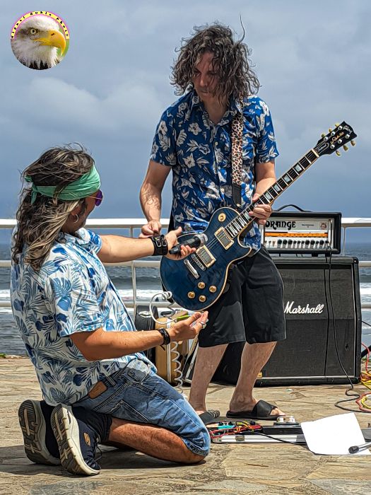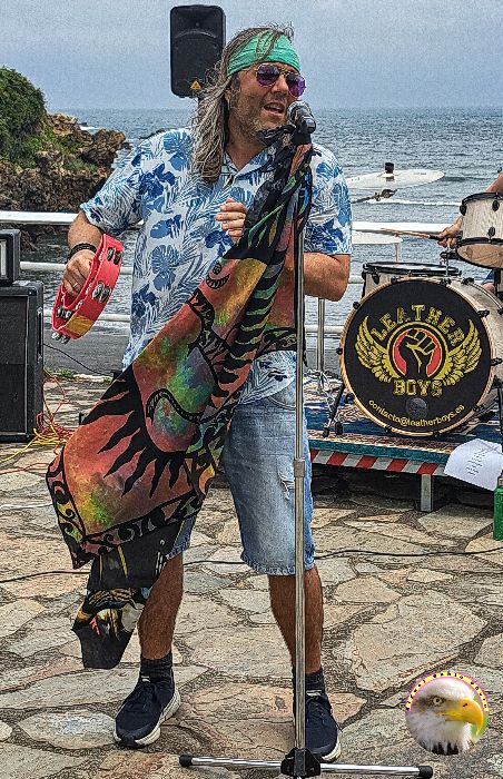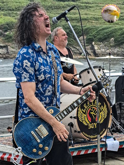 Los músicos, ataviados para la ocasión con camisas floreadas, playeras e incluso chanclas llegaron a bromear calificándose para la ocasión como los Leather “Beach” Boys. Eso si, según Leather Rose mucho más cómodos y seguros los playeros para los diversos saltos que ejecutó a lo largo de toda la actuación que las camperas con las que suele actuar.