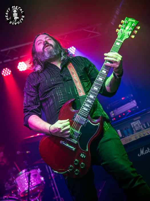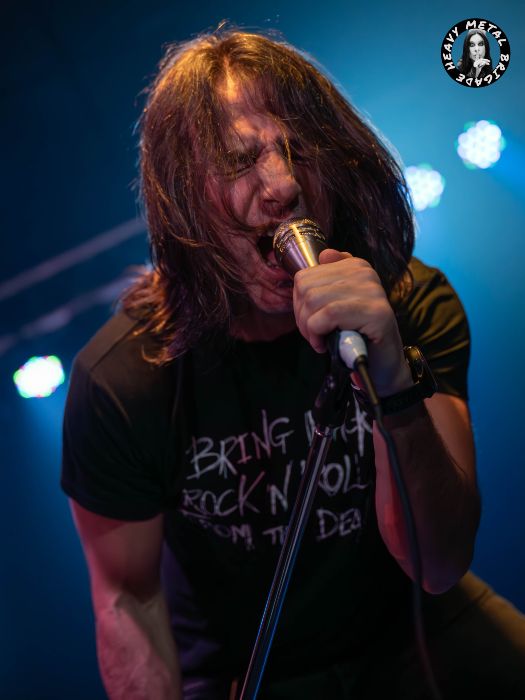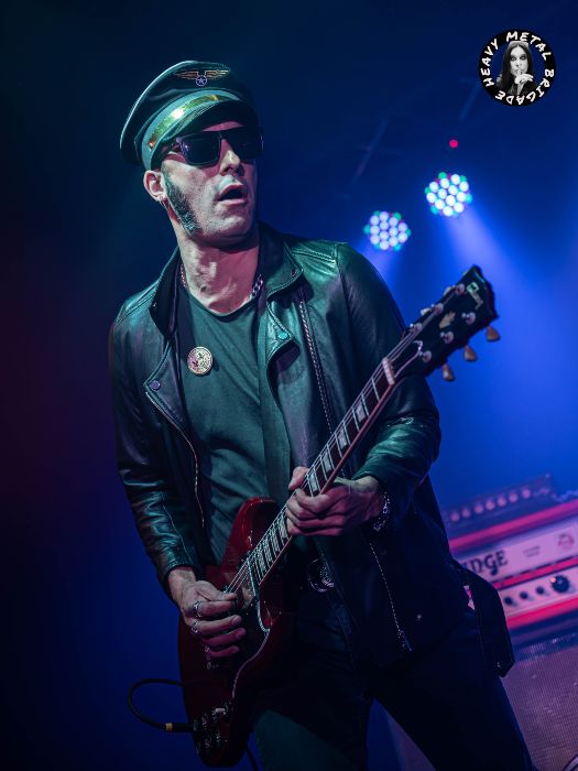 En la más vivaracha “El Herrero” ya vemos que a Michael Arthur Long, volcánico frontman del quinteto, se le queda muy pequeño un escenario como este. Subido a la pequeña barandilla y agarrado al techo, busca con ímpetu la respuesta del público mientras Ger deja ya muestras de su pericia con la SG. “Fuera De Control” haría honor a su nombre. Y es que, en lo que sería una de las constantes durante toda la descarga, Secta se transformaron en una versión mucho más trepidante que su encarnación de estudio. El público coreó estribillos aquí y la banda enlazó con una “Todo o Nada” que procuró un hard rock quizá más liviano pero a buen seguro más vacilón.