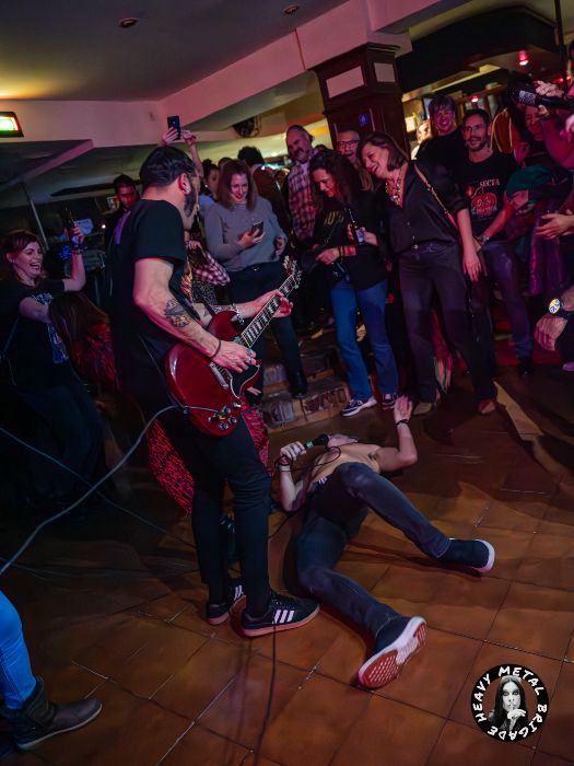 Pravia propulsa a la banda con no poco brío en “Dulce Dinamita”, una de las más celebradas en la noche del sábado, mientras que “Panzer” se inicia no sin que el frontman mande un recuerdo al recientemente desaparecido Charlie Günner, quien fuera voz de los inolvidables The Punishers. Nos esperaba un final de aúpa. Primero por el solazo que Ger Gilsanz, rodillas a tierra, dibuja para “Electroshock” y segundo por ese “Nada Nos Va A Parar” que tanto y tan bien resume su propia idiosincrasia como banda. Arthur Long subido en la barra, Gilsanz entre el público y ambos integrantes fundiéndose durante la catarsis final. De nuevo una de las cosas más divertidas que uno puede hacer vestido. Y es que a fin de cuentas, el tipo de música que hacen podrá gustar más o menos pero estos chicos, y hasta que se demuestre lo contrario, siempre cumplen. Su techo no sabemos donde está, pero de que saben bajar al barro y divertirse en él no nos cabe la menor duda.