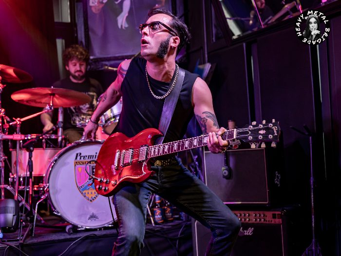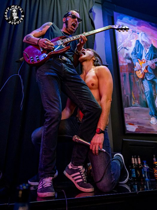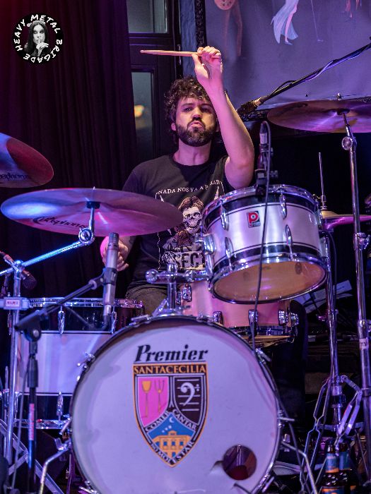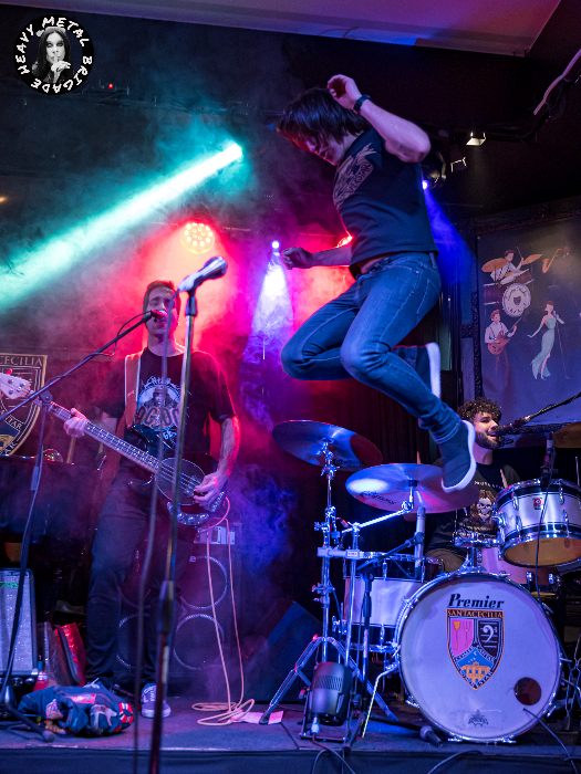 Juan Pablo Cotera bordando el papel de Malcom, desgranando unas rítmicas de las que no puedes huir y aportando junto a Pelayo Vázquez y Pablo Pravia unos coros marca de la casa, ceden el protagonismo a la dupla Michael Arthur Long / Ger Gilsanz. El también voceras de Drunken Buddha volvió a demostrar que habrá vocalistas más técnicos pero no más entregados a la tarea y carismáticos. No quedaría barra del bar, tarima, escenario ni espacio aéreo sin su presencia. Muy activo en todo momento, sorpresivamente durante varias fases del concierto elevó el tono vocal con agudos que aportaron un plus de agresividad a su interpretación.