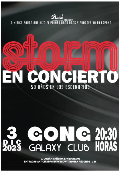 Banda de culto Storm, pionera del hard rock progresivo y calificados en su momento como los Deep Purple españoles, celebrará sus más de 50 años de trayectoria también en Asturias. La cita será el domingo 3 de diciembre en el ovetense Gong Galaxy Club.