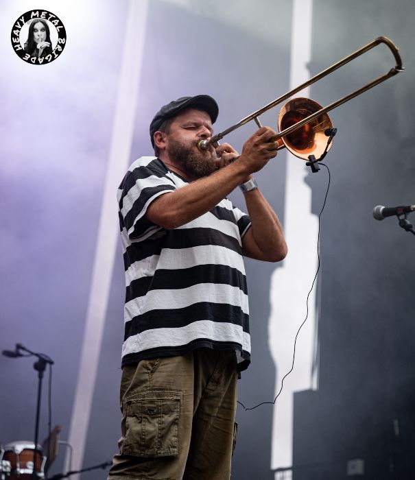 Arrancamos el repaso gráfico al festival Unirock con la primera actuación de la tarde en el escenario principal, La Tarrancha y su personal ska-fusión.