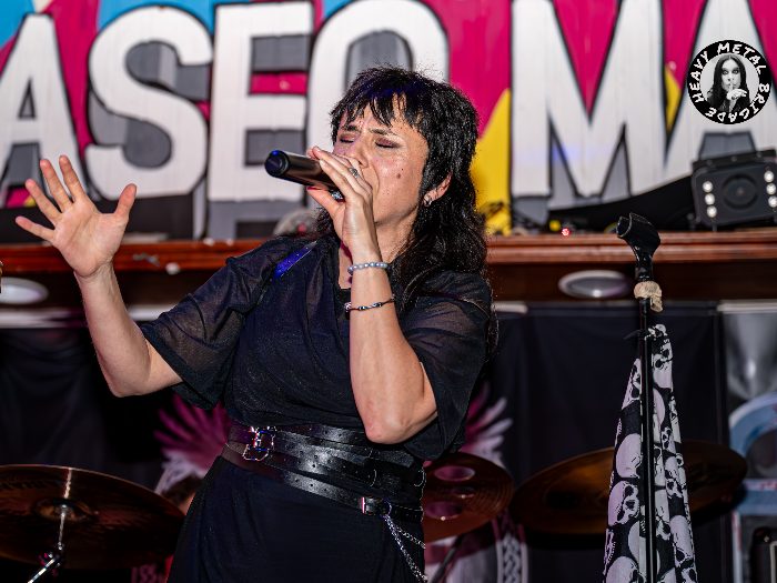 “Blood Eagle”, de hecho, desplegó esa cara más heavy y clásica, con Robert dejando un buen solo de guitarra y la banda enlazando con “Lágrimas De Freya”. Y fuese por la presencia de Lorena al micro, o por ciertos riffs que dibujaron, el nombre de los siempre recordados Darna sobrevoló mi subconsciente aquí. En líneas generales, y con una frontwoman de lo más activa, me pareció que estábamos viendo una gran versión de los de Puerto de Vega.
