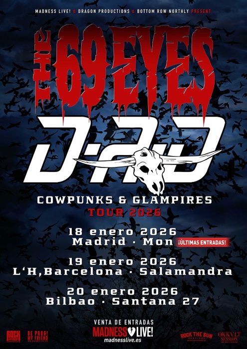 La gira conjunta «COWPUNKS AND GLAMPIRES TOUR» protagonizada por los íconos hard rockeros daneses D.A.D. y los oscuros vampiros fineses THE 69 EYES llegan a nuestros escenarios este mes de enero.