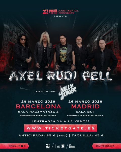 Apenas 7 días para la doble parada de Axel Rudi Pell en la presentación en España de su nueva obra de estudio «Risen Symbol«, editado el pasado año vía Steamhammer. De la mano de Z! On Tour los conciertos en Barcelona y Madrid contarán con los valencianos Jolly Joker como banda invitada.