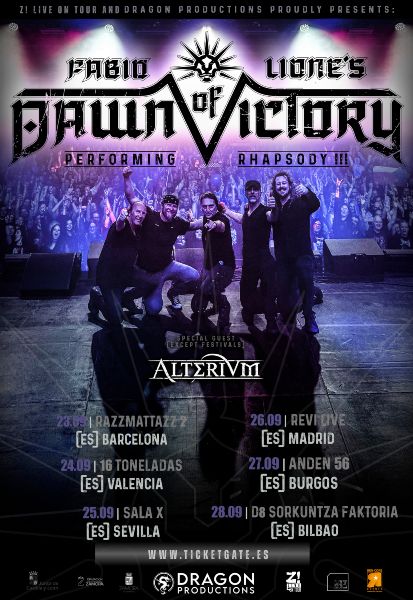 Vía Z! Live On Tour y Dragon Productions el infatigable vocalista italiano Fabio Lione recalará en 6 escenarios estatales con su nuevo proyecto Fabio Lione’s Dawn Of Victory. La voz de Rhapsody rendirá homenaje a una formación con la que creó un estilo musical.